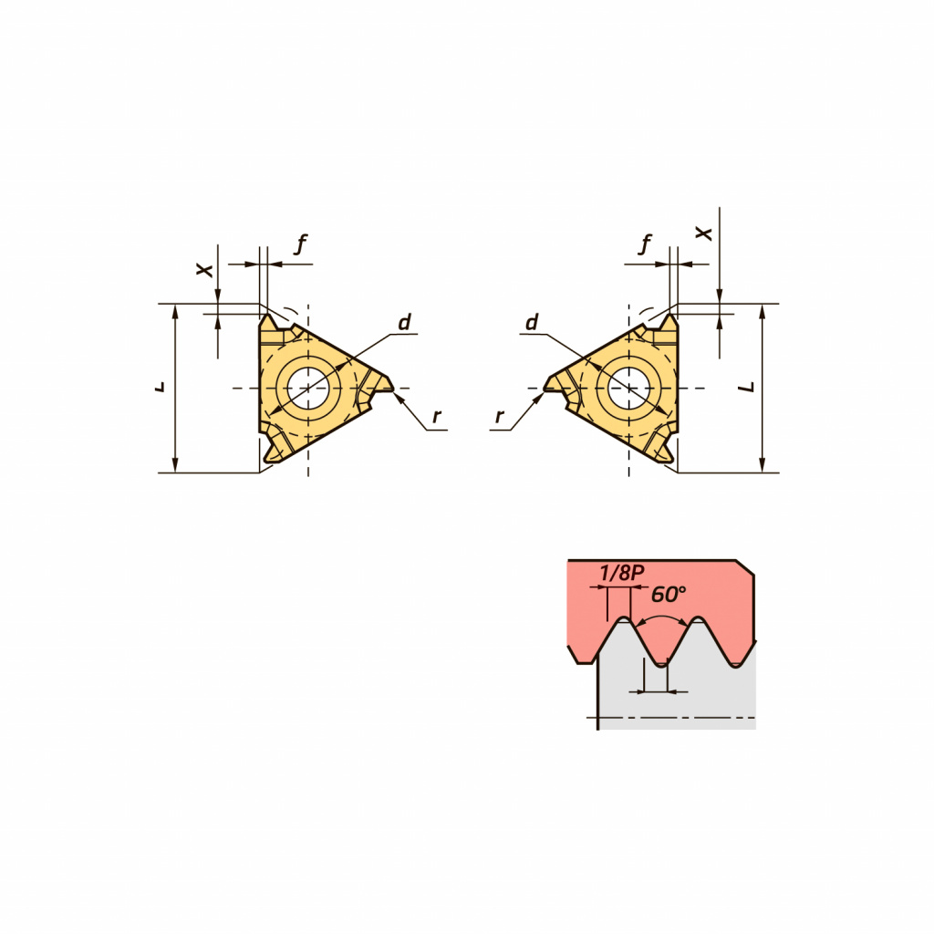 - 16NR 1.5 ISO/SD2136 Пластина резьбовая внутренняя резьба, шаг 1,5