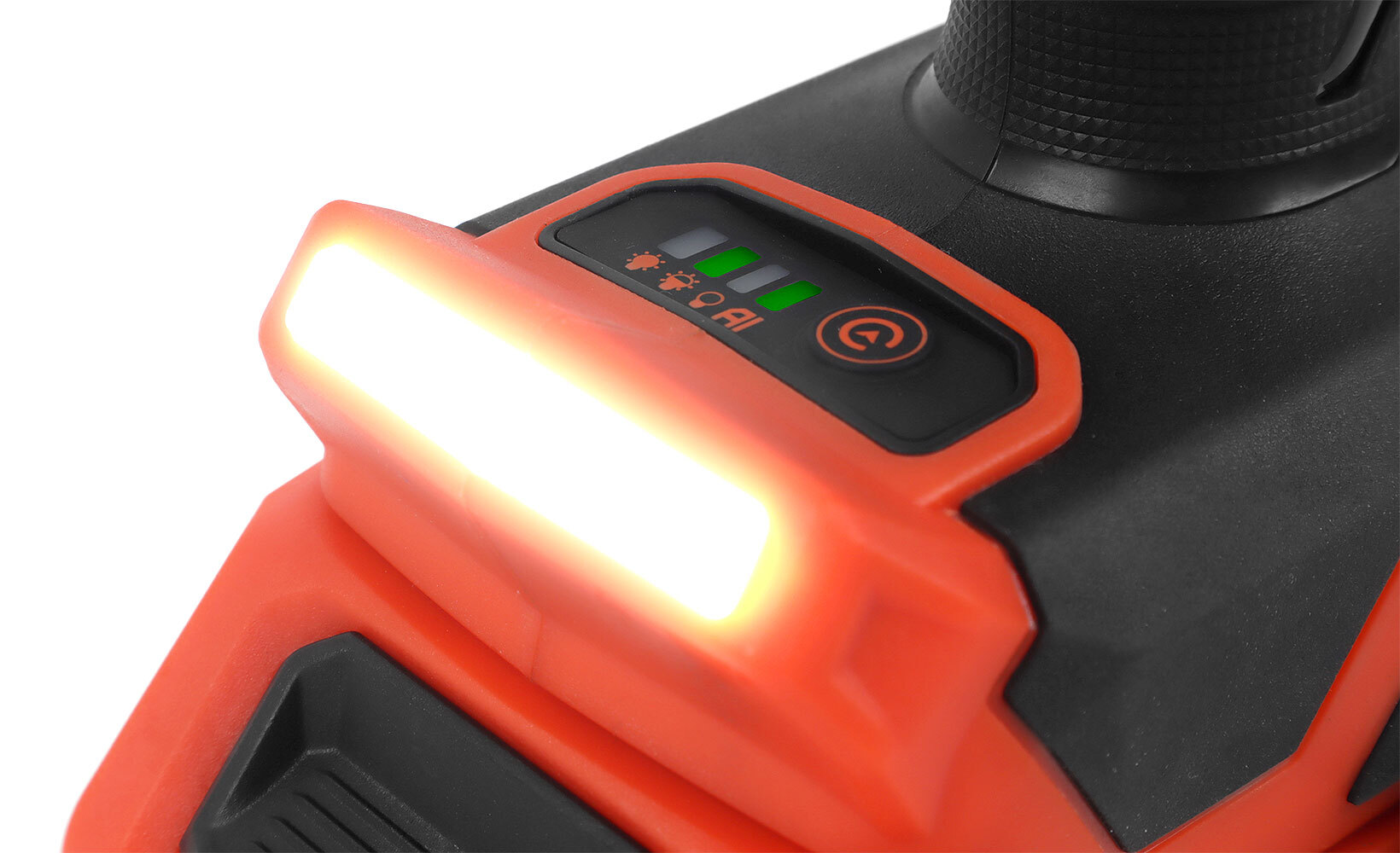 Яркая LED-подсветка не только освещает рабочую зону, но и может использоваться как источник длительного освещения.