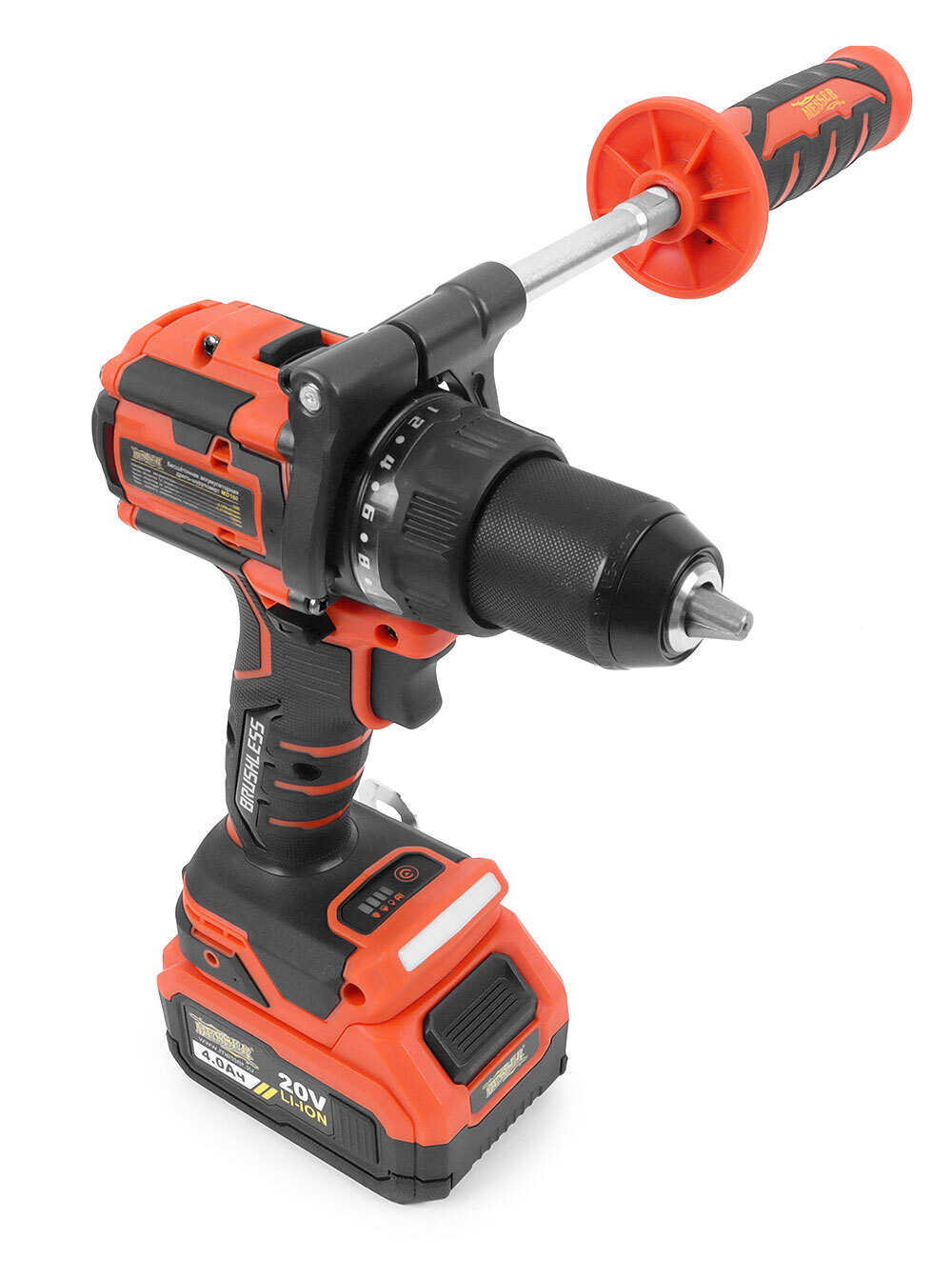 Бесщеточный двигатель обеспечивает длительную эксплуатацию, мощный 20-ти вольтовый аккумулятор с емкостью 4 Ah, крутящий момент в 160 Нм с 18-ти ступенчатой регулировкой, 2-х скоростной редуктор с блокировкой шпинделя – все это позволяет сверлить отверстия в металле, дереве, пластике и других материалах, а также работать с шурупами и саморезами разных длин и диаметров.