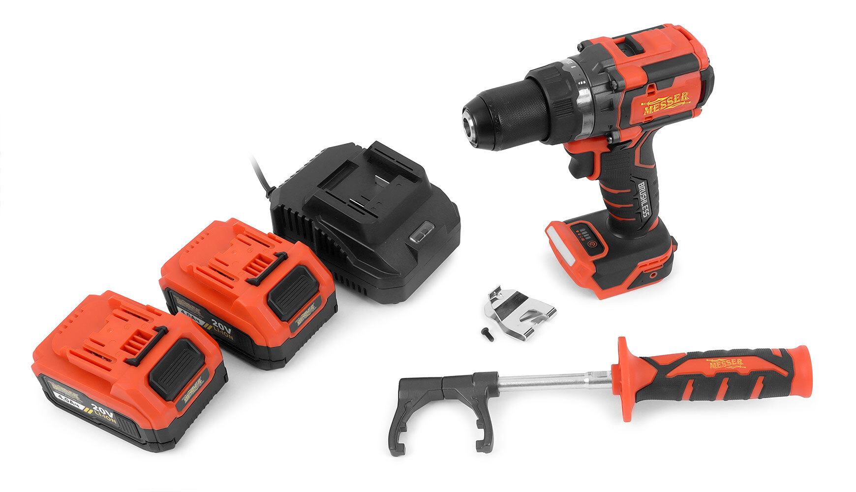 Дрель-шуруповерт MESSER MD 160 поставляется с 2-я Li-ion аккумуляторами и быстрозарядным устройством в удобном для хранения и транспортировки пластиковом кейсе М-BOX.
