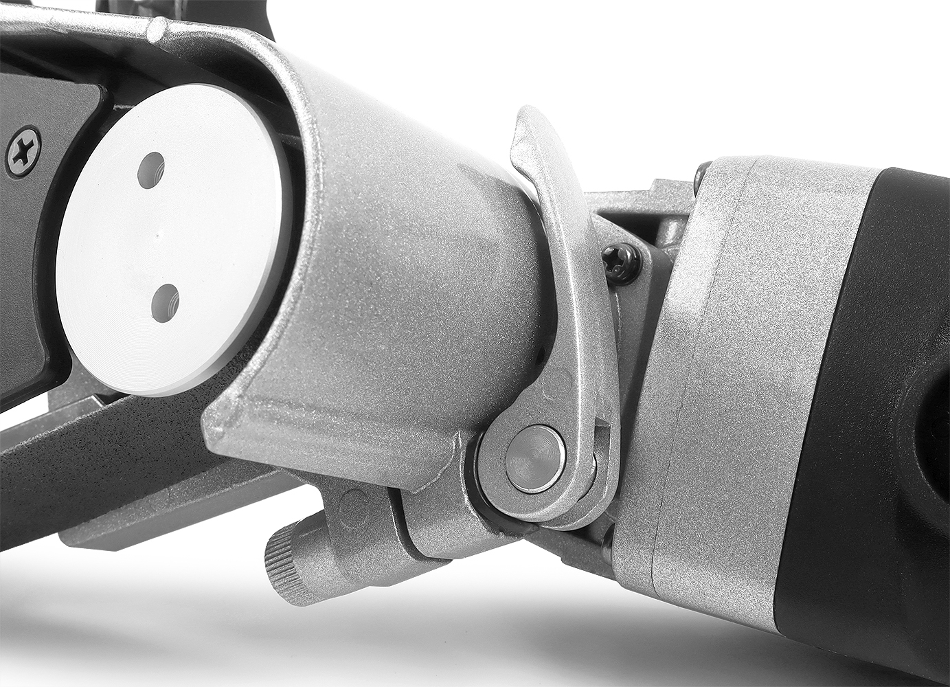 Эксцентриковый зажим дает оператору возможность выбрать удобный угол наклона лентопротяжного механизма по отношению к двигателю, тем самым делая работу комфортнее и безопасней.