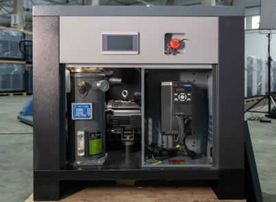 Частотный преобразователь Folinn обеспечивает плавный запуск и остановку компрессора, снижает пусковые токи двигателя и защищает устройство от перегрузок, короткого замыкания или потери фазы.