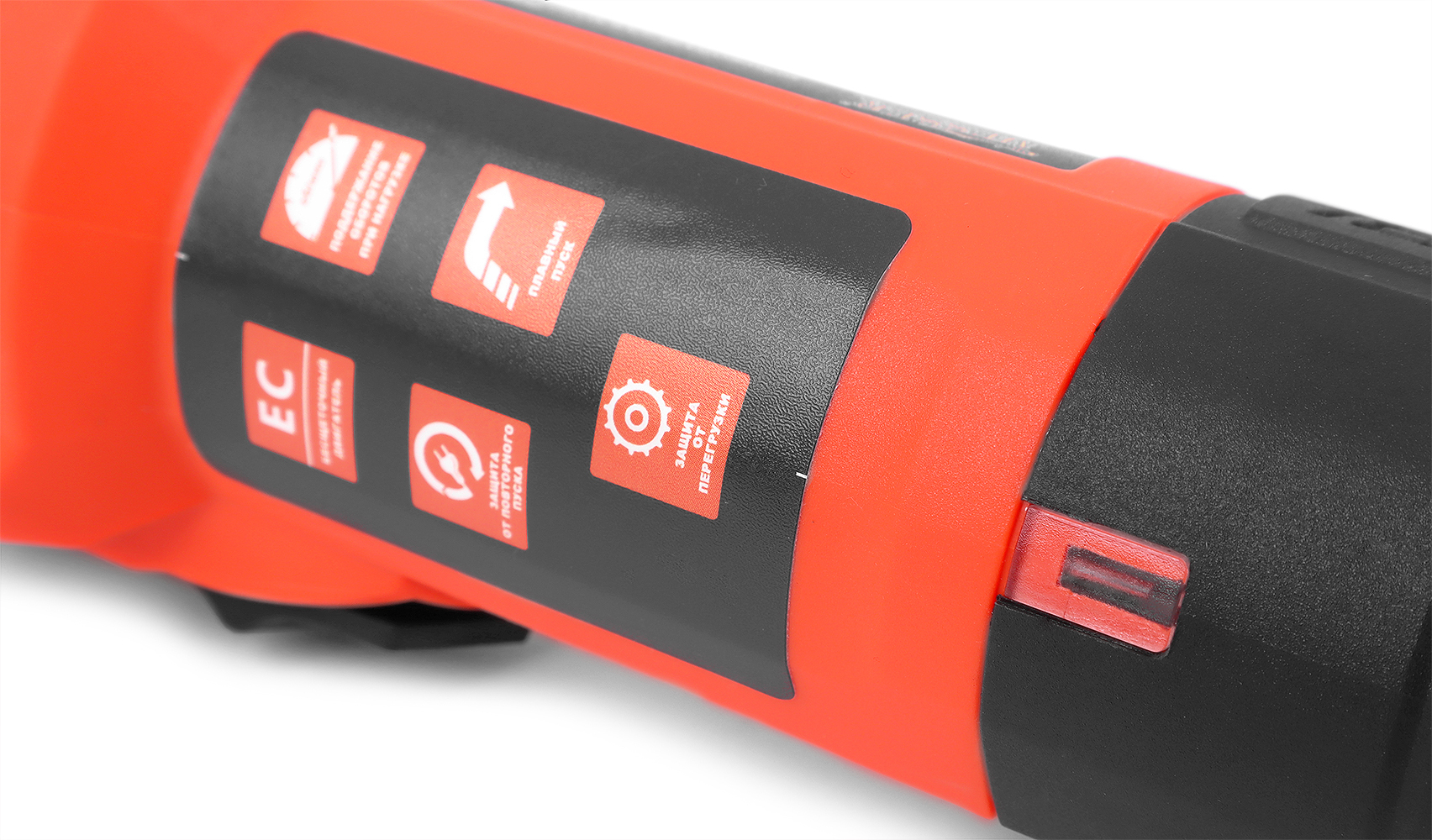 Шлифмашина также оснащена функцией плавного пуска, поддержанием оборотов при нагрузке и защитой от повторного пуска. А антивибрационная рукоятка помогает устранить нежелательные вибрации на оператора.