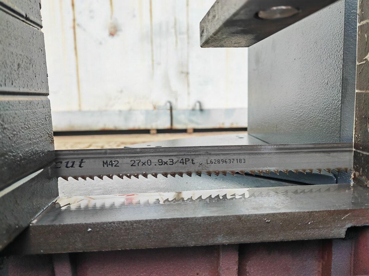 Непосредственно процесс резки осуществляется пильным полотном (ленточная пила), которая сварена в кольцо и установлена на пильной раме, методом натяжения на шкивы. Привод осуществляется одним шкивом, что является типовым для данного вида оборудования.