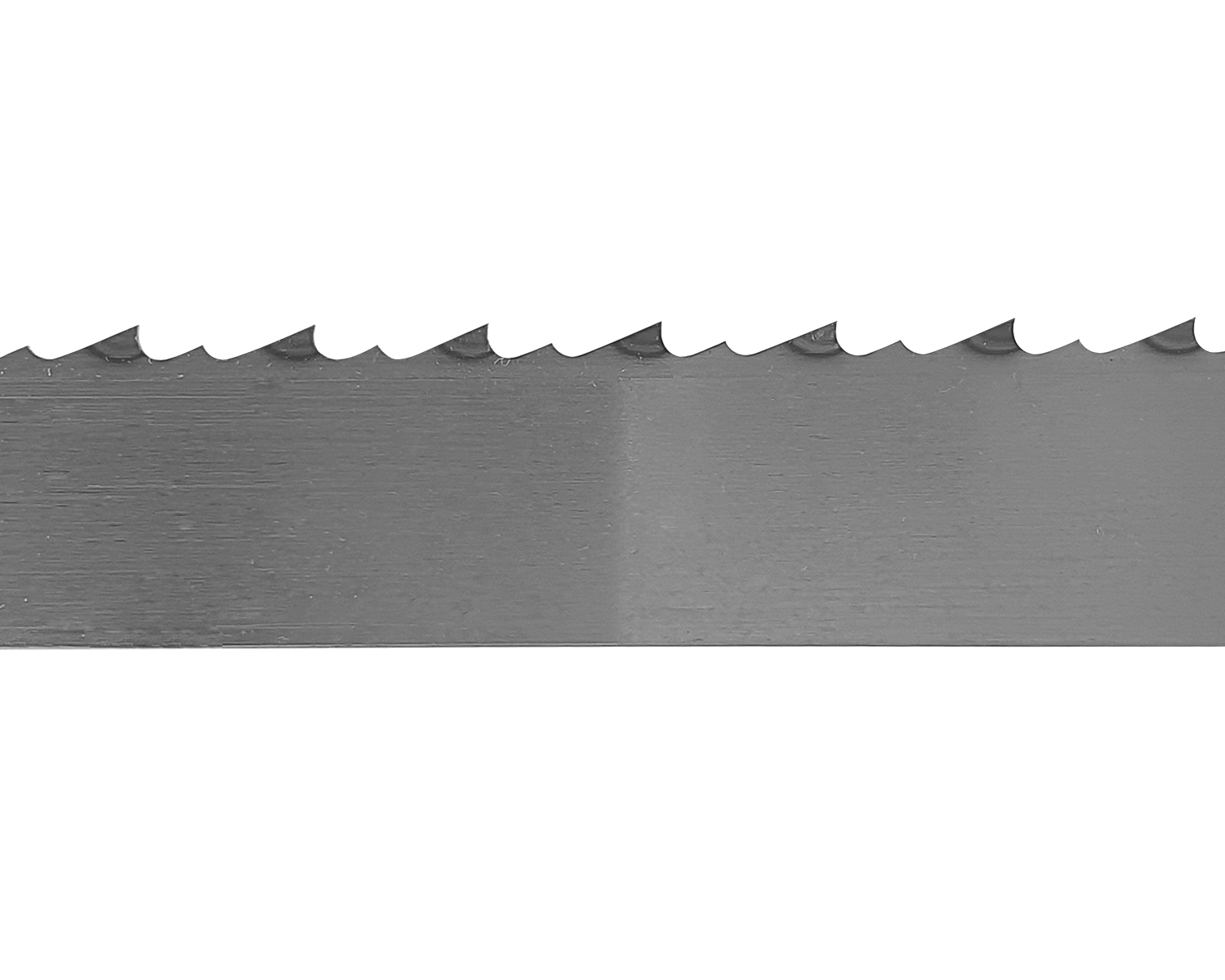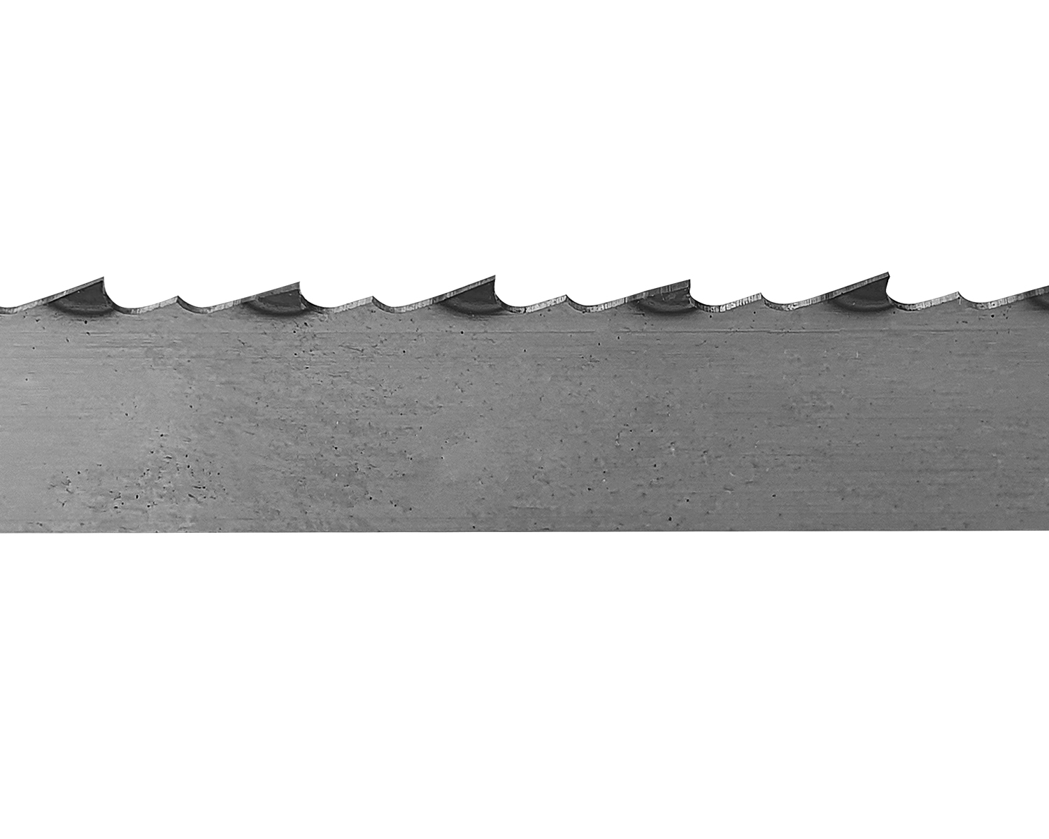 Полотна с подрезным зубом или «волчий» зуб применяются для каркасного пиления туш на полутуши. Подкаленный зуб позволяет сохранять полотно острым как можно дольше. Подрезной маленький зуб обеспечивает гладкий срез и снижает вероятность налипания различных волокон (сухожилий) при работе. Специальное исполнение по хим составу стали предусматривает использование на ленточных пилах с маленькими шкивами и высокой скоростью вращения.