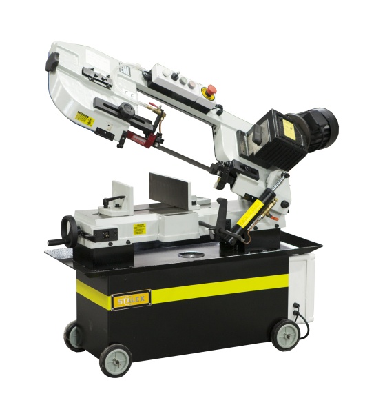 Стандартная модель мобильного ленточнопильного станка, разработана для резки черных металлов и других материалов с целиковым, полым или профильным сечением. Станок позволяет делать распилы заготовок диаметром до 180 мм в полуавтоматическом режиме с ручным возвратом пильной рамы в первоначальное положение. Пила опускается под собственным весом, станок оборудован дросселируемым гидравлическим цилиндрами подач, который позволяет автоматически подстраивать скорость опускания пильной рамы в зависимости от профиля заготовки, что обеспечивает оптимальные режимы распила. Станкам не требуется подключение к источнику сжатого воздуха.