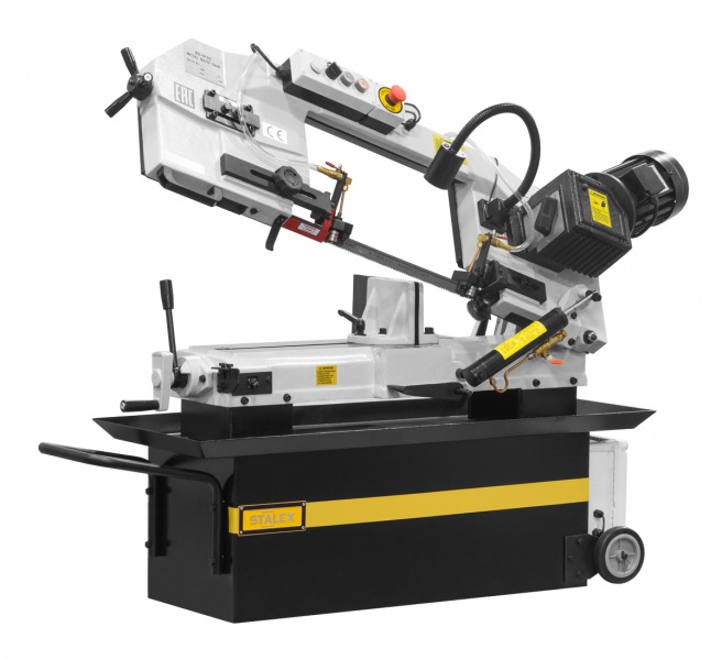 Stalex BS-912G Стандартная модель мобильного ленточнопильного станка, разработана для резки черных металлов и других материалов с целиковым, полым или профильным сечением. Станок позволяет делать распилы заготовок диаметром до 230 мм в полуавтоматическом режиме с ручным возвратом пильной рамы в первоначальное положение. Пила опускается под собственным весом, станок оборудован дросселируемым гидравлическим цилиндрами подач, который позволяет автоматически подстраивать скорость опускания пильной рамы в зависимости от профиля заготовки, что обеспечивает оптимальные режимы распила. Станок Stalex BS-912G имеет поворот губок тисков, для пиления под углом необходимо изменять угол установки тисков, привод зубчатый. Зажим заготовки осуществляется тисками вручную, подача заготовки - также вручную. Мобильность станков позволяет использовать их на производстве непосредственно там, где это необходимо. Станки находят широкое применение в серийном и мелкосерийном производстве. Система СОЖ в стандартной комплектации. Модель Stalex BS-912G реализует все преимущества ленточнопильных станков: • высокая производительность • высокое качество, точность распилки и узкая ширина пропила • высокая стойкость инструмента • малая энергоёмкость • легкость и простота в обслуживания <img width="210" alt="DSC_2176.jpg" src="/upload/medialibrary/0da/0daa0e8998a6eb52c002d8602d6fe004.jpg" height="140" title="DSC_2176.jpg" border="0"> Поворотные тиски на угол от 0° до +45° <img width="210" alt="DSC_2169.jpg" src="/upload/medialibrary/5c3/5c3e6fa68463a9ac785a6fcf744bb12c.jpg" height="140" title="DSC_2169.jpg" border="0"> Помпа для подачи СОЖ <img width="210" alt="DSC_2183.jpg" src="/upload/medialibrary/a83/a837bc130560fd17d9739eb0213faf88.jpg" height="140" title="DSC_2183.jpg" border="0"> Система гидроразгрузки
