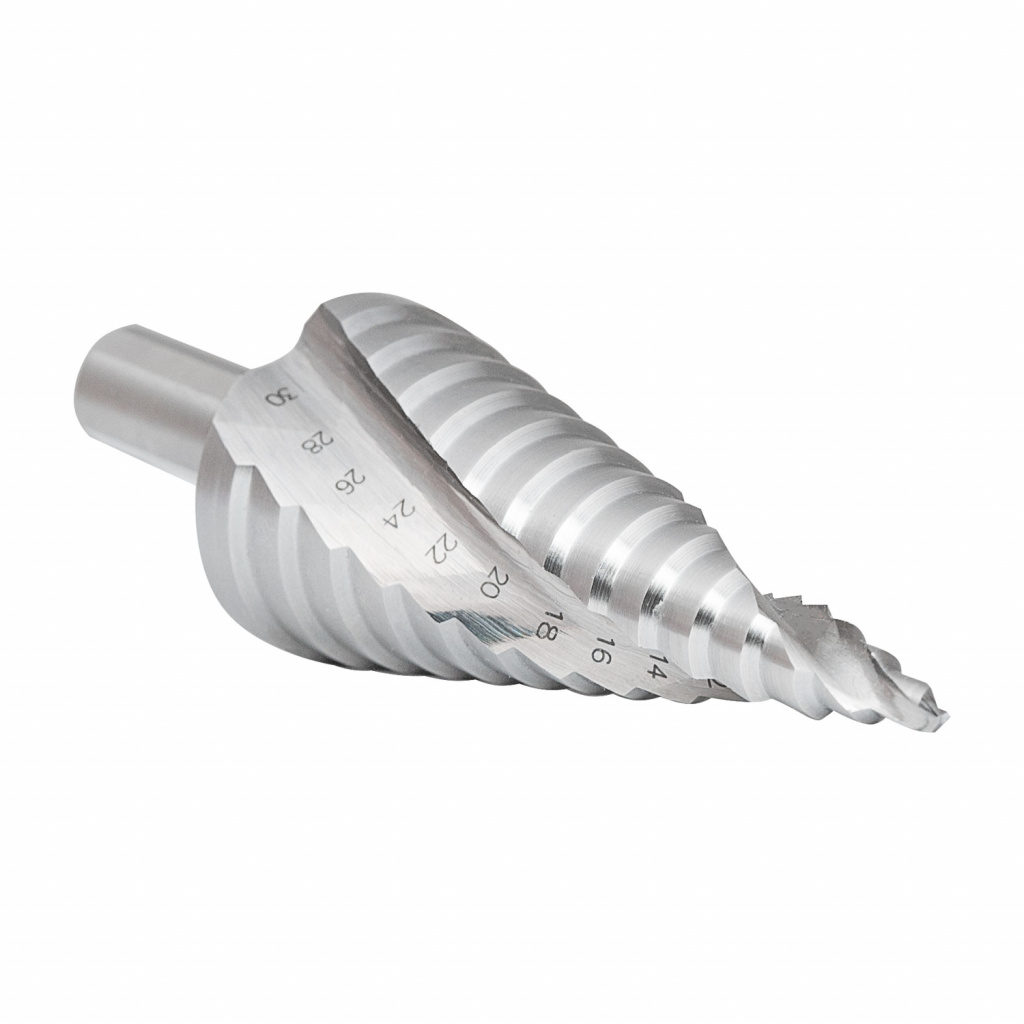 - Ступенчатое сверло со спиральной канавкой HSS M2, 9 ступеней, 1/4"-3/4"