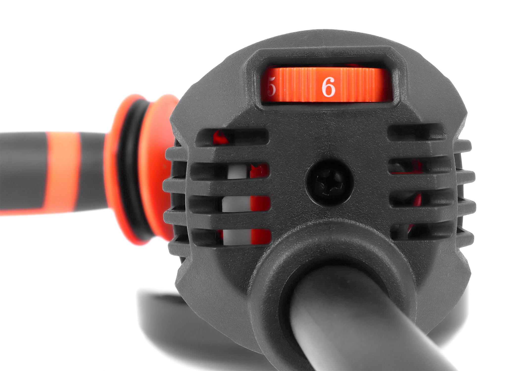 Инструмент оснащен плавным пуском и регулировкой скорости, защитой от перегрузки, поддержанием оборотов при нагрузке (константной электроникой) и защитой от повторного пуска, что обеспечивает ее безусловное лидерство в своем классе. Дополнительное бронирование якоря и статора защищает двигатель от абразивной пыли и позволяют работать по любым материалам, будь то металл, бетон, керамика.